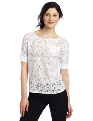 Jones New York Women's Ballet Neck Lace Top, White, Large Review