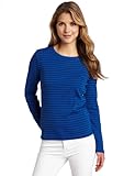 Jones New York Women's Petite Long Sleeve Striped Crewneck Top, French Blue/Black, Medium