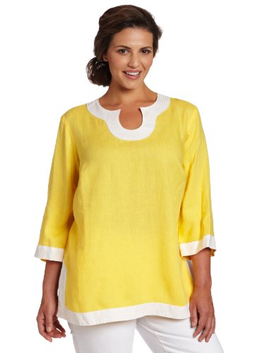 Jones New York Women's Plus-Size 3/4 Sleeve Open Keyhole Tunic Top, Canary Yellow, 2X