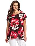 Jones New York Women's Plus-Size Cap Sleeve Drape Tee, Cocoa/Multi, 1X